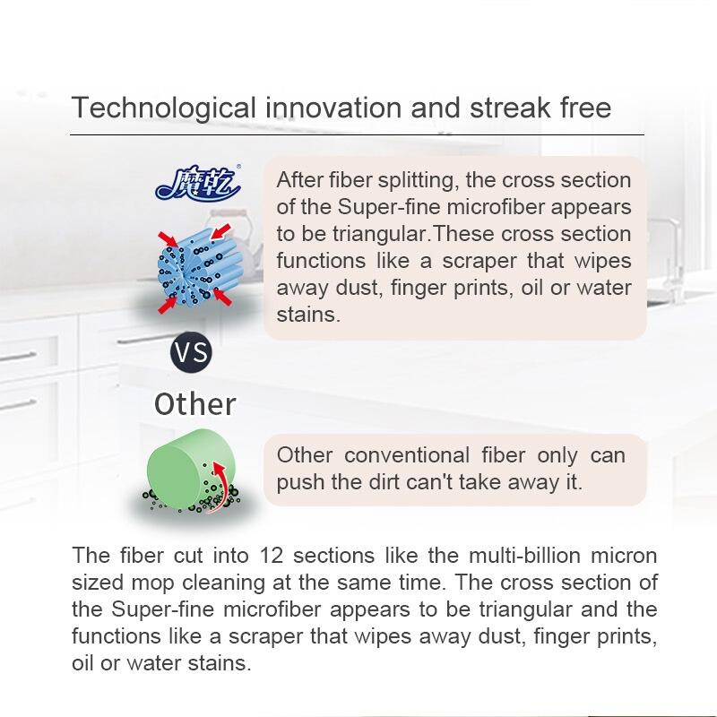 - The diameter of the yarns is only 0.3% of one single hair. Just like the multi-billion micron sized mop cleaning at the same time, capturing any size dust, stubborn stains or sticky grease, easily remove them all at once.